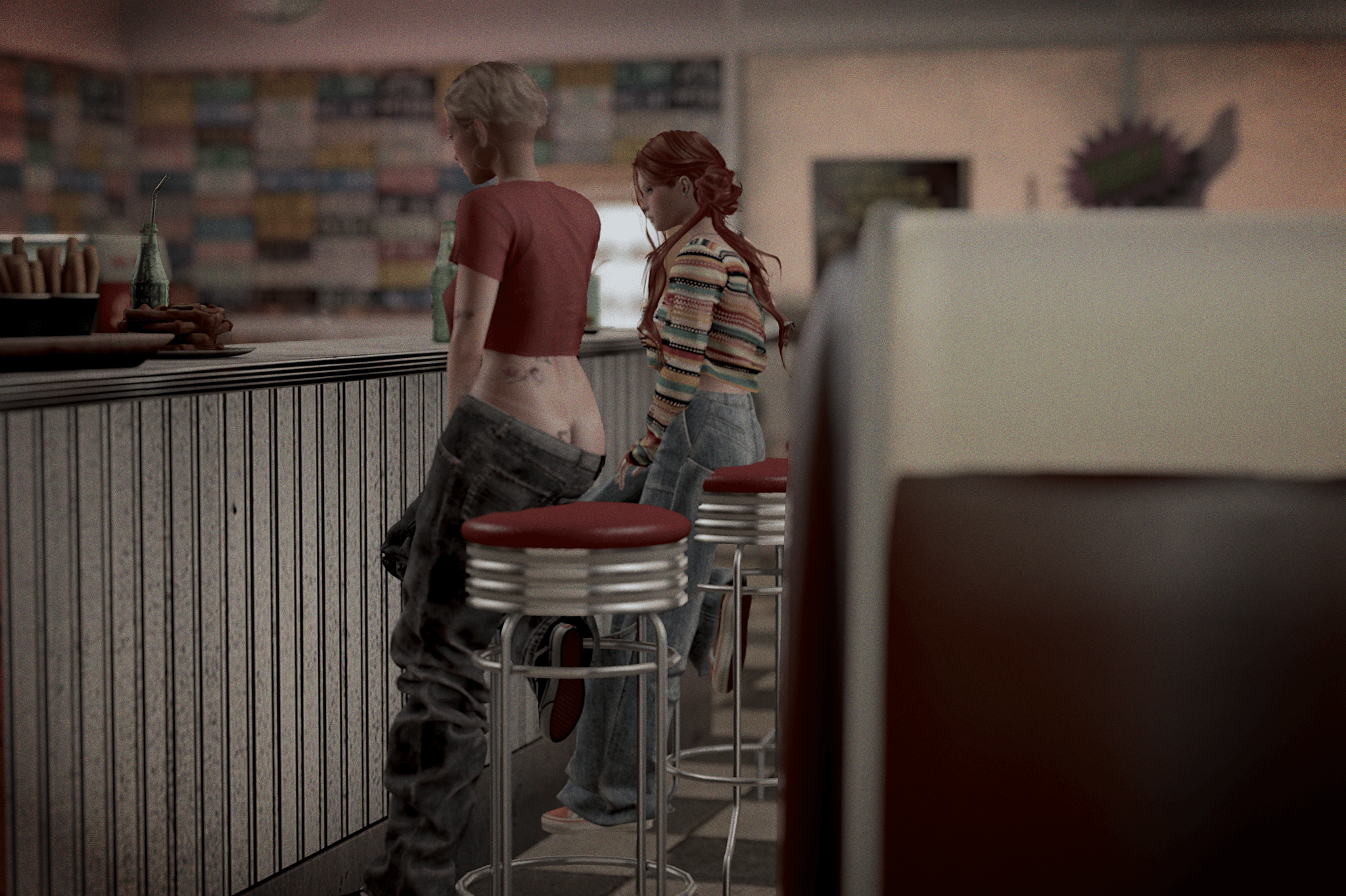 At least they had a diner, though the odds of surviving the plate of fried everything they pushed in front of me seemed rather slim. I didn’t pay her any attention at first…a local maybe, or if she was lucky, a fellow lost soul, just passing through. We made small talk until the waitress made us clear the counter for “paying customers”…even if the diner was just as deserted as the rest of the town.